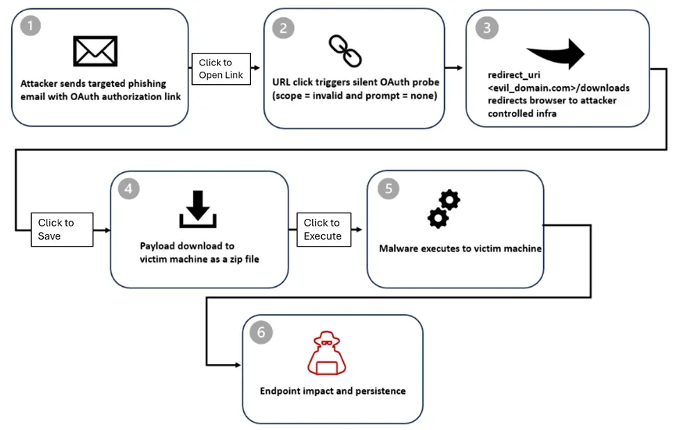 OAuth redirection abuse: Threat actors are abusing the redirection-to-URL feature of legitimate OAuth services to redirect the targets of phishing campaigns to malicious downloads. Attacks are ongoing and have targeted government and public-sector organizations. Microsoft has removed some of the OAuth apps involved in the attacks.