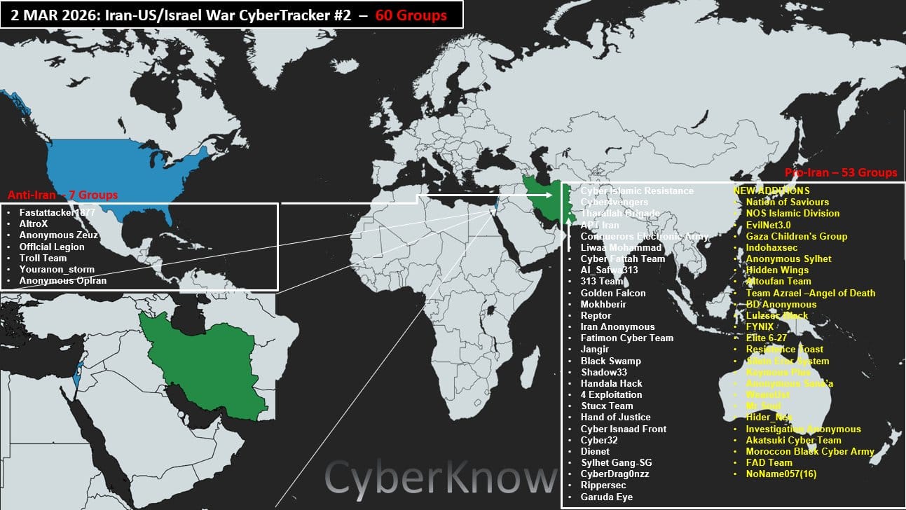 On the useless and more performative side of "the cyber," over 60 hacktivist groups have pledged their support for Iran or the US-Israel side. Most of them are pro-Kremlin groups who joined Iran's side, but no major DDoS attacks have been carried out so far.