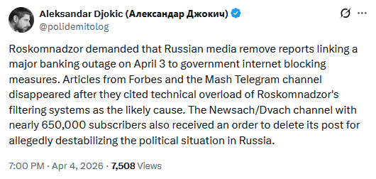 Roskomnadzor VPN ban causes banking outage: The Russian government's attempt to block VPN traffic caused a major banking outage at the end of last week. Point of sales and ATM transactions were down for hours early on Friday. According to Russian tech experts, the issue was caused by Russian banks using VPN tunnelling technologies to handle some data transfers. Once banking transactions were restored, Russia's internet agency tried to hide its mistake by ordering some news sites to take down articles.