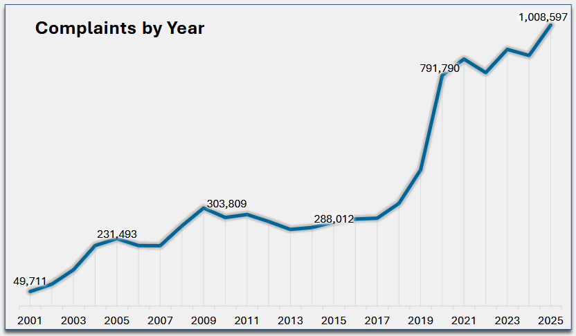 Last year was also the first time the FBI received more than one million cybercrime reports.