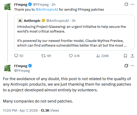 Anthropic announces cybersecurity initiative: Anthropic has granted over 40 tech companies access to a new AI agent for cybersecurity defense work. The new Mythos agent was designed to help companies find vulnerabilities in their code. The company has also donated $4 million to open-source security organizations to help fund the patching of some of the found issues.