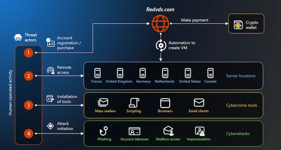 Microsoft takes down RedVDS: Microsoft and law enforcement agencies have shut down the RedVDS server marketplace. The site sold access to compromised RDP servers to other cybercrime gangs. The servers were later reused as infrastructure to host or carry out mass-phishing, BEC scams, account takeover, and other crimes. Raids took place across Germany , but no suspects have been arrested so far.