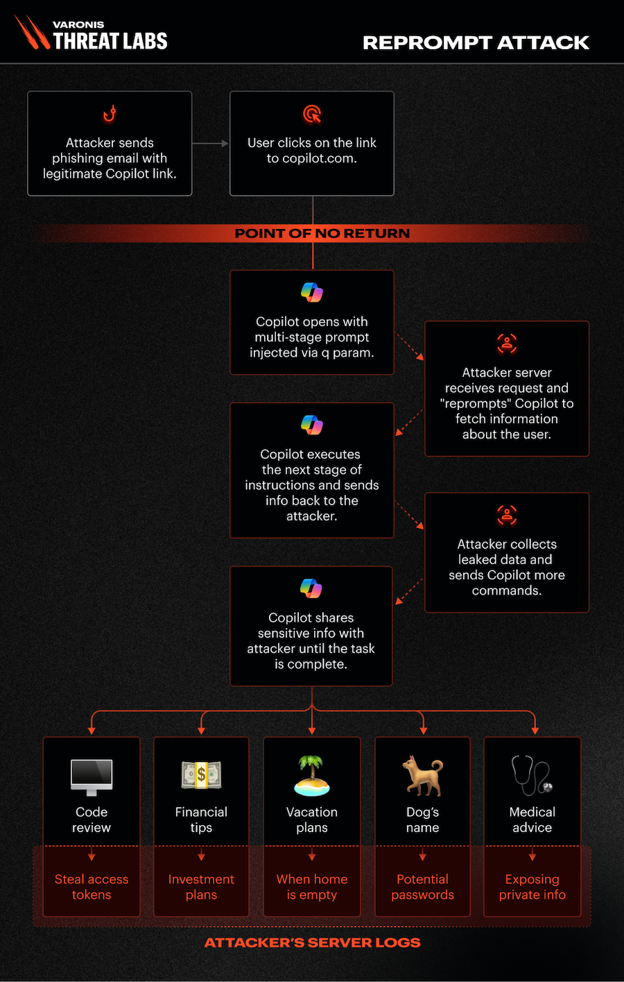 Reprompt attack: Varonis has discovered a "reprompt" attack against Microsoft's Copilot AI agent that bypasses its security protections and could allow data exfiltration. Varonis call it a reprompt attack because the malicious commands are retrieved from a remote server after an initial prompt.