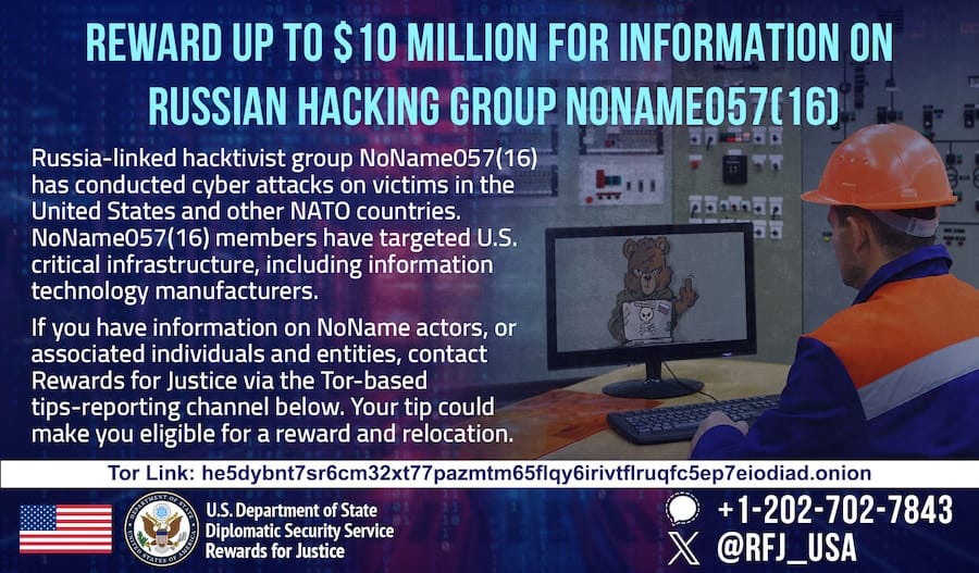 US charges NoName057 and CARR member: The US has indicted a Ukrainian woman for participating in cyberattacks against critical infrastructure. Victoria Eduardovna Dubranova was allegedly part of two pro-Kremlin hacktivist groups named NoName057 and CyberArmyofRussia_Reborn (CARR). The US Justice Department says the groups tampered with US public water systems and caused an ammonia leak at a US meat processing factory. Dubranova pleaded not guilty in a US court this week. The US is also offering rewards for additional information on other members of the two groups [ CARR // NoName057 ]. CISA, the NSA, and other international cybersecurity agencies also released joint security advisories on the activity of pro-Kremlin hacktivists, while Twitter also took down NoName057's account.