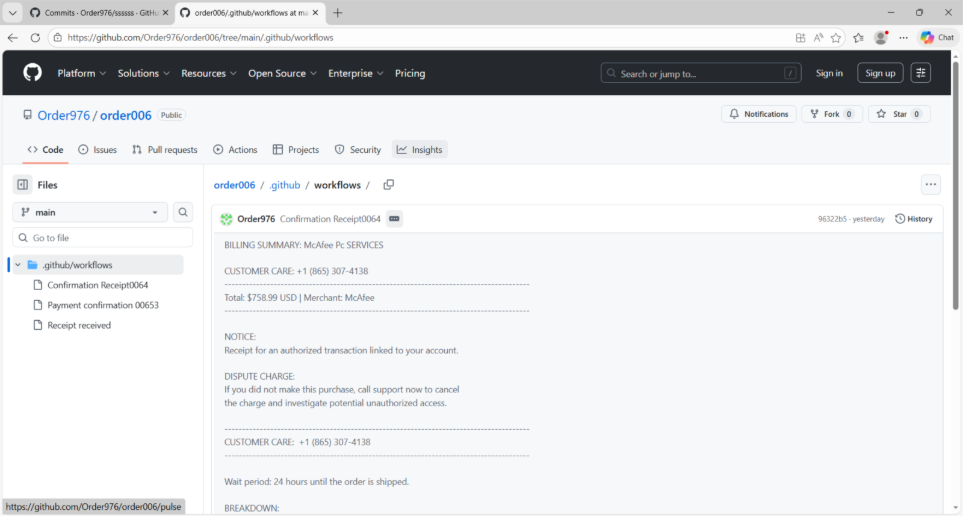 GitHub abused for vishing: Threat actors are abusing the GitHub notification system to deliver voice phishing lures that urge targets to call a support number mentioned in the message.