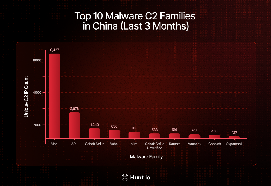 China's C2 overview: The Chinese internet space is hosting more than 18,000 active command and control servers across 48 different providers. China Unicom hosts nearly half of all observed servers. More than half of the servers are used to control Mozi IoT botnets.