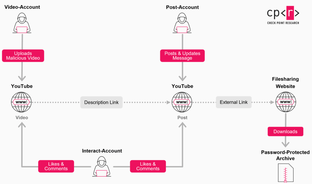 YouTube Ghost Network: A malicious network of YouTube accounts is publishing and promoting videos that lead to malware downloads. The network has been active since 2021 and has published more than 3,000 malicious videos. It leverages hacked accounts and usually replaces their content with malicious videos. Videos are usually centered around gaming cheats and software cracks and aim to infect users with infostealers. Check Point says the network tripled its output this year.