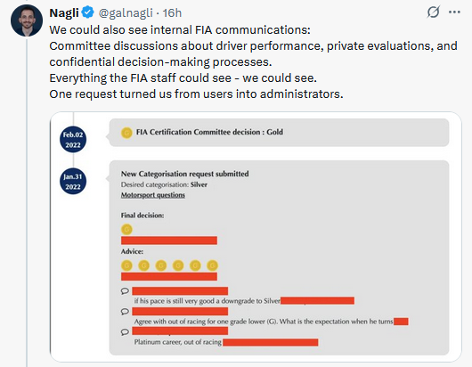 FIA portal exposes F1 driver data: The personal details of all F1 and other drivers could have been stolen via an FIA web portal. The site allowed any user to assign themselves an admin role. The portal stored information on drivers applying for F1 license categorization and internal FIA correspondence. The motorsport body fixed the vulnerability within a week.