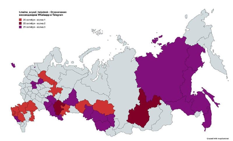 Russia restricts WhatsApp and Telegram again: The Russian government is blocking access to the WhatsApp and Telegram instant messaging services. Outages of IM services have been reported in 34 regions covering 40% of Russia's territory. The Russian government had already been restricting access to WhatsApp and Telegram voice and video calls since August . Officials said they're restricting access to the two services due to their use in extortions and the recruitment of saboteurs. [ Additional coverage in The Moscow Times ]