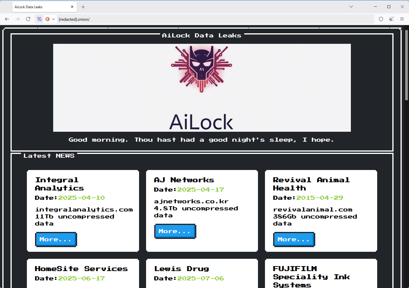 New AiLock ransomware group: A new ransomware group started leaking victims this month. Named AiLock, the group claims to have already breached at least 12 companies. One of them is apparently England's field/grass hockey federation.