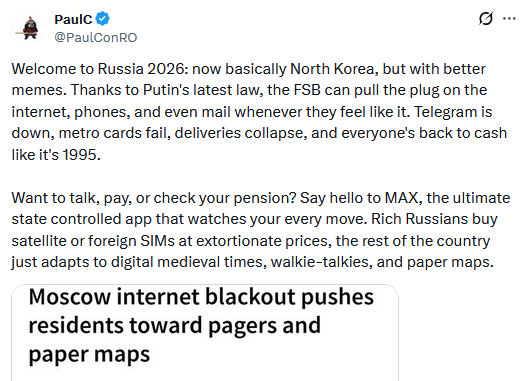 Another MAX complaint: Here's another report that Russia's national messenger MAX might be a secret government backdoor and enables broad surveillance. There's been quite a few of those lately.