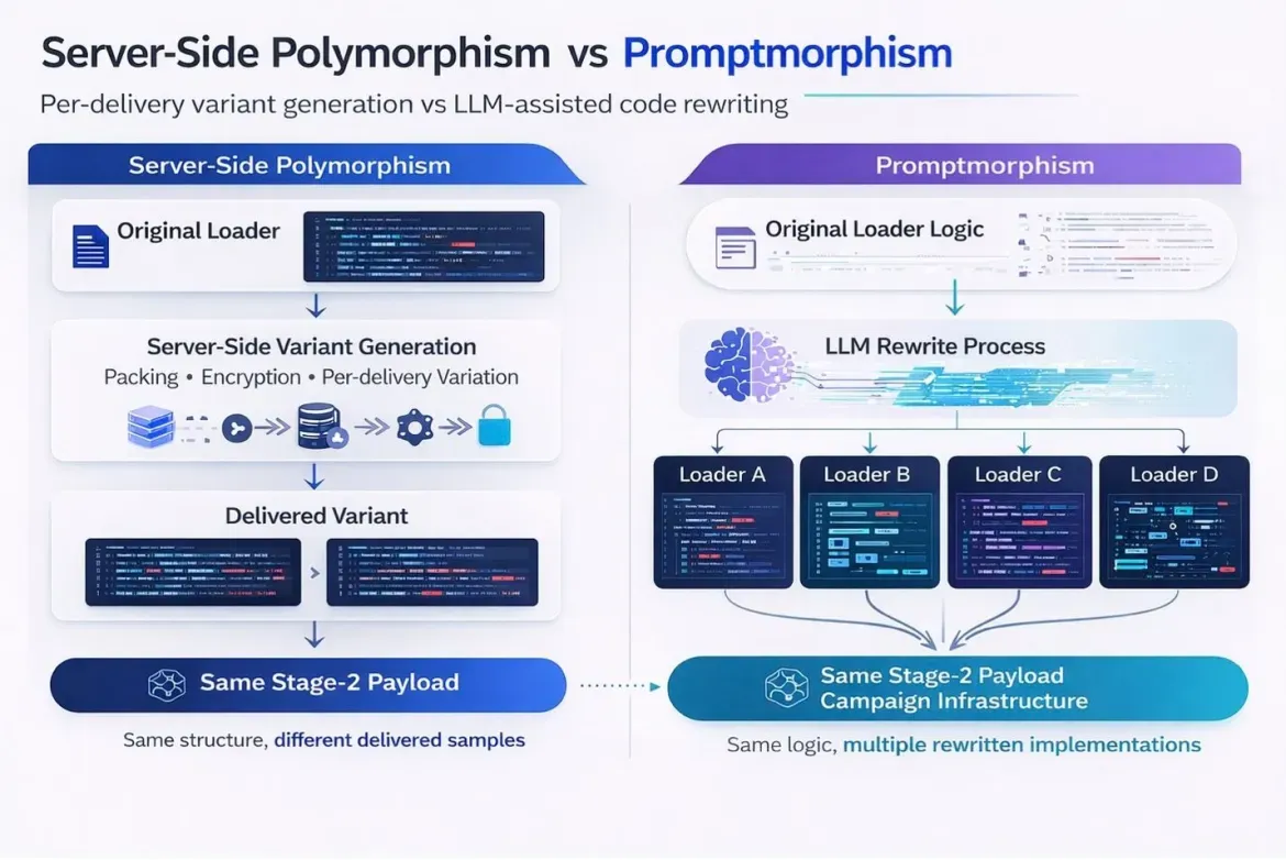 Promptmorphism: Gen Digital researchers describe promptmorphism, a new twist on polymorphism, where threat actors use AI tools to rapidly generate new versions of their malware.