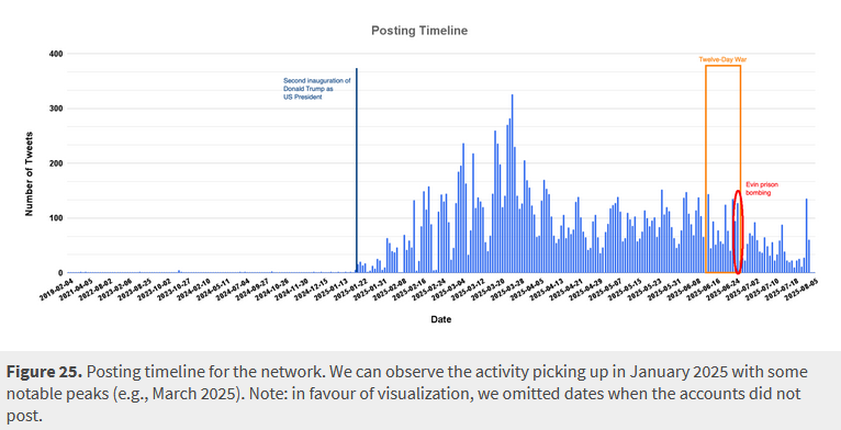 PRISONBREAK influence op: A network of at least 50 Twitter accounts engaged in an influence operation designed to incite a revolt against the Iranian regime. The accounts were created in 2023 but were activated this year, during an Israeli military offensive against the country. CitizenLab believes an Israeli intelligence agency or one of its contractors is behind the operation.