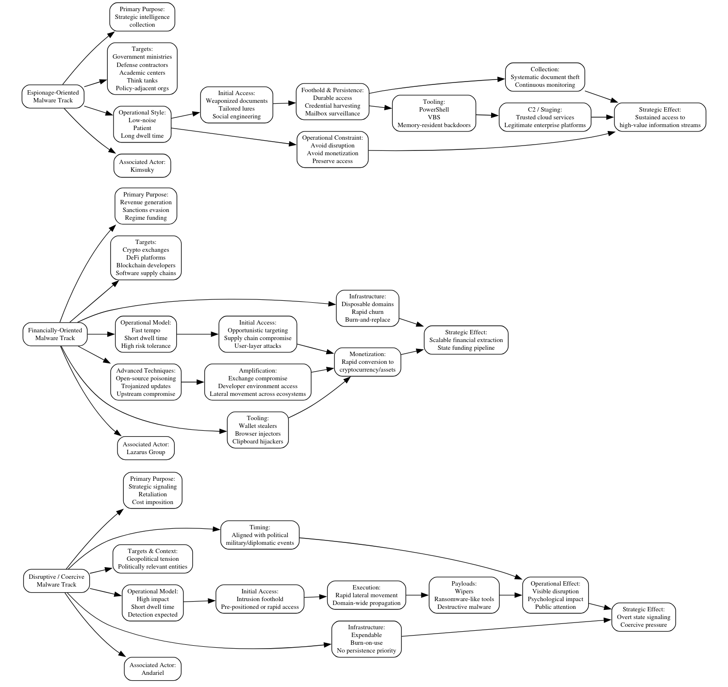 DPRK malware overview: The DomainTools security team has published a report looking at how North Korean hackers have diversified and deliberately split their malware dev into three main categories—for espionage, e-crime, and disruptive attacks.