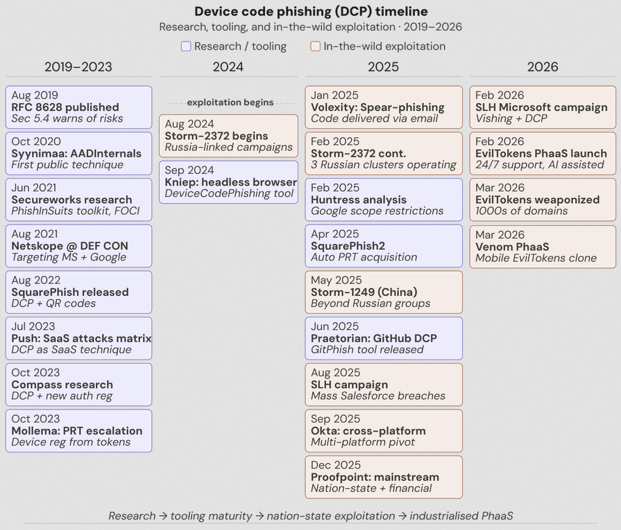Device code phishing kits proliferate: Device code phishing campaigns have increased by 37.5 times this year, according to Push Security. Attacks that were specific to APT groups last year have now been widely adopted by the e-crime ecosystem. At least 10 distinct phishing kits capable of device code phishing operations have been spotted in the wild. The most popular of these is called EvilTokens, also known as Antibot. The others include the likes of Dolce, DCStatus, Paprika, Flow_Token, DocuPull, Authov, LinkID, Clure, and ShareFile.