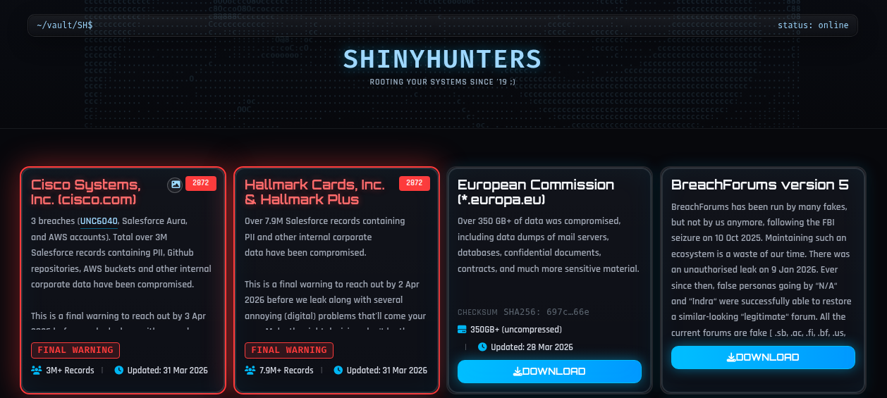 EU links recent breach to Trivy supply chain attack: The EU's security team has linked a recent security breach of the European Commission's AWS environment to the Trivy supply chain attack. A hacking group named TeamPCP compromised the Trivy security scanner last week to steal credentials and access tokens from its user. Those credentials were allegedly sold to other hacking groups who used them to steal data and extort victims. CERT-EU says a group called ShinyHunters used its stolen creds to access the EU's AWS account, steal over 90GB of data, and leak it on the dark web.