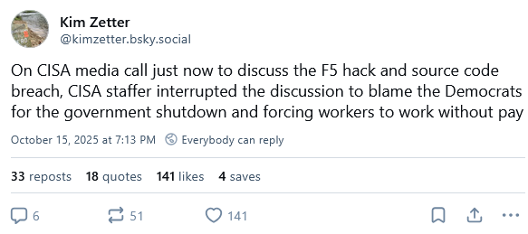 - CISA also acted weird on a call for no reason, because people in the US have clearly lost their minds these days.